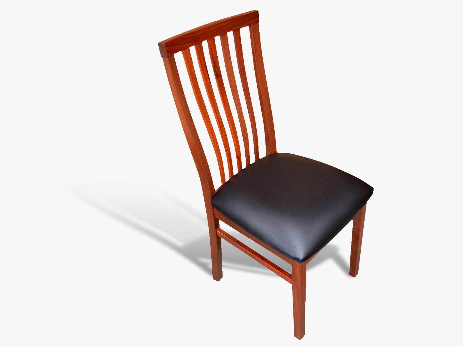 The “Exmouth” chair with its elegant slats has a classic style but suits many! Very stylish and comfortable, these chairs are another to definitely consider! Shown here in Jarrah, but available in the other timber selections. Choice of fabrics or leathers.